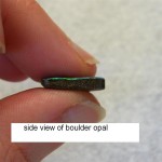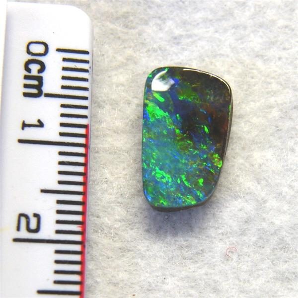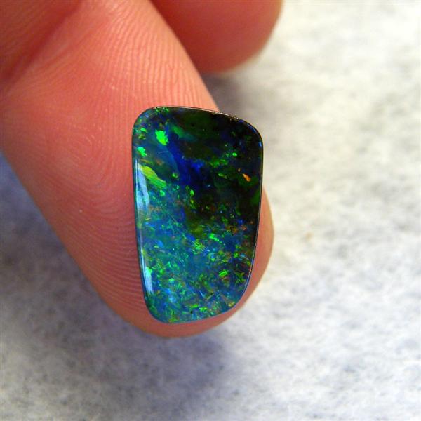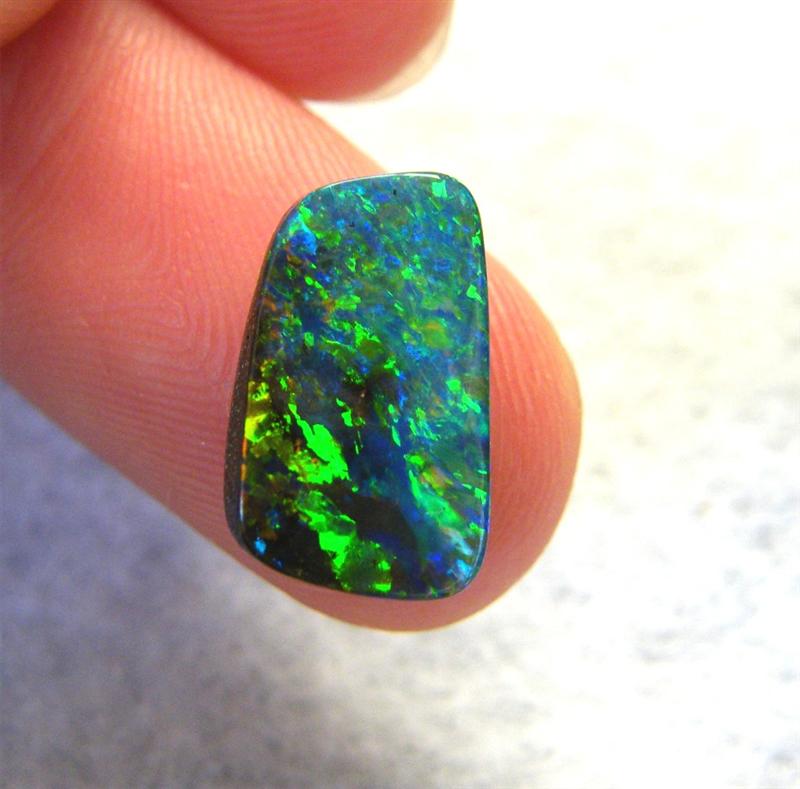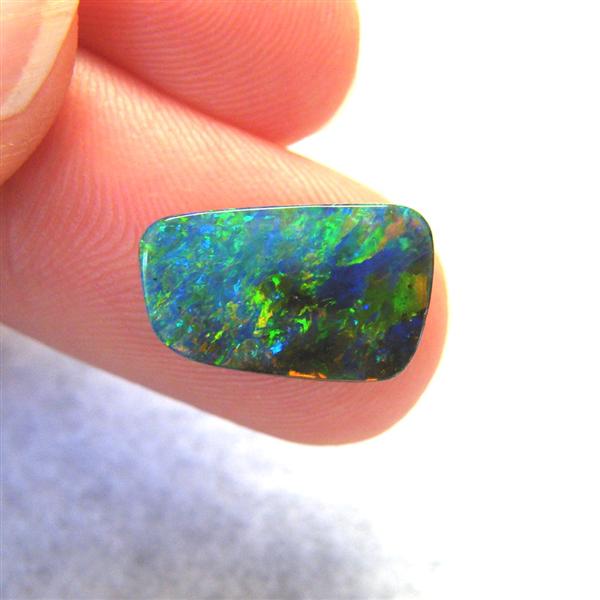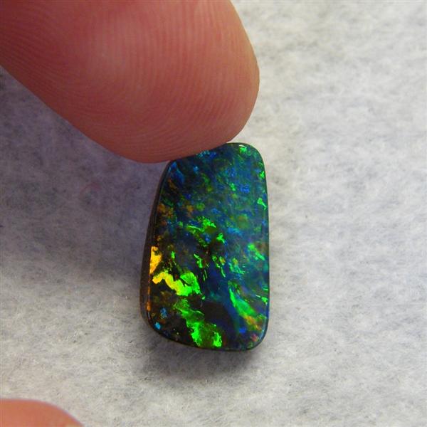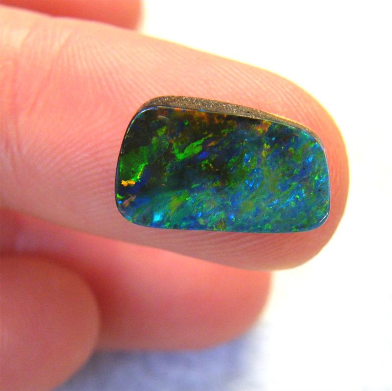 Beautiful colours are seen as you move this natural Australian boulder opal about. It is predominantly green with flashes of gold, orange and blue. It is from the Quilpie mining district in western Queensland.