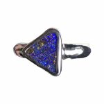 Sterling silver ring with natural bright blue Australian boulder opal from our mine. There are natural flaws in this opal which has been electroformed to a sterling silver band.