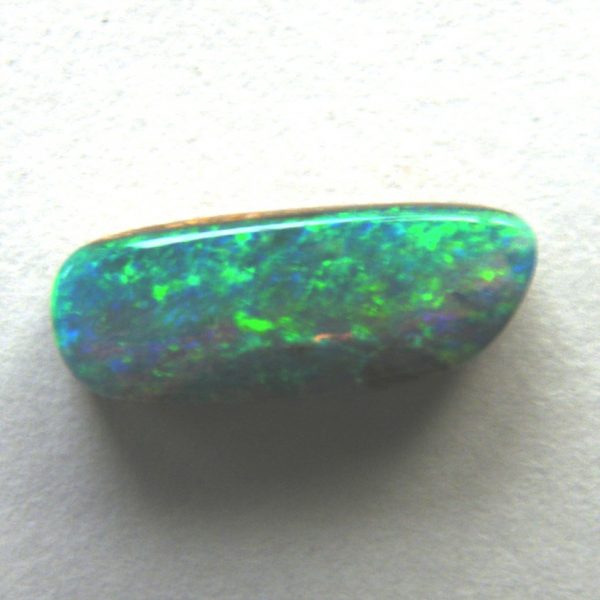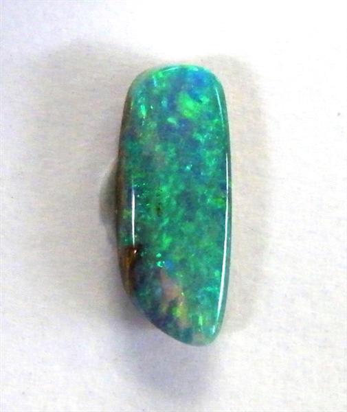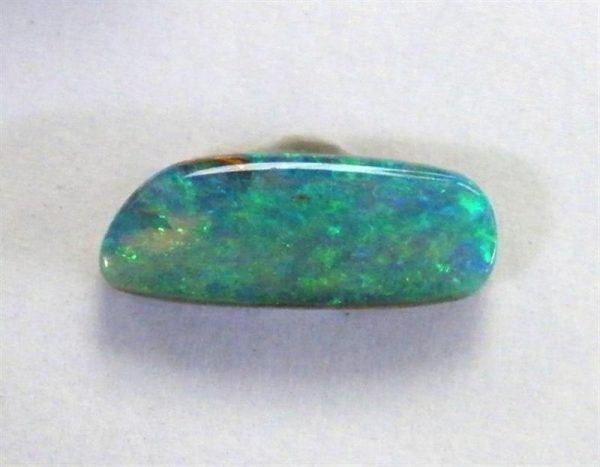 From our mine in the Quilpie district in western Queensland comes this pipe opal in pretty green with natural adhering sandstone still on the back. Pipe opal occurs when fragments of tree roots or any organic material are trapped in sediments on an opal level and in time some of resulting cavaties are replaced by potch or precious opal. The sandstone has been stabilised with a polymer resin to increase strength and durability and avoid chipping during setting process. (Not a doublet)