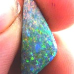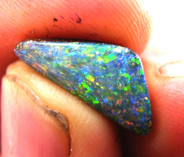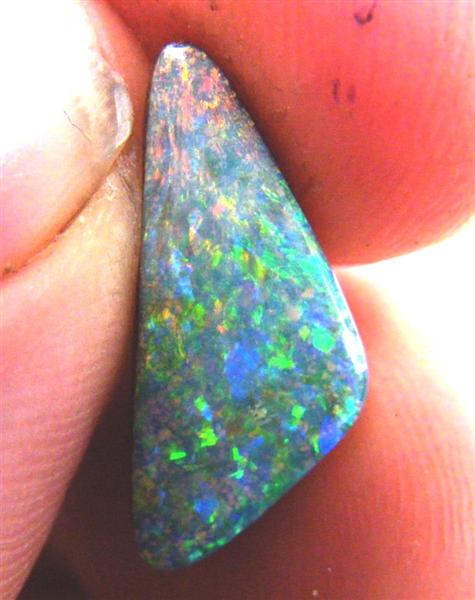 This dazzling solid boulder opal displays a variety of pastel colours. (NOT A DOUBLET OR TRIPLET). It is quality cut and highly polished with a slight cabachon top. It was found at our mine near Quilpie in western Queensland.