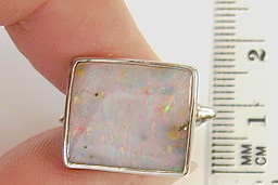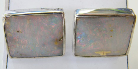 Natural Australian boulder opal in pink tonings set in sterling silver cufflinks.