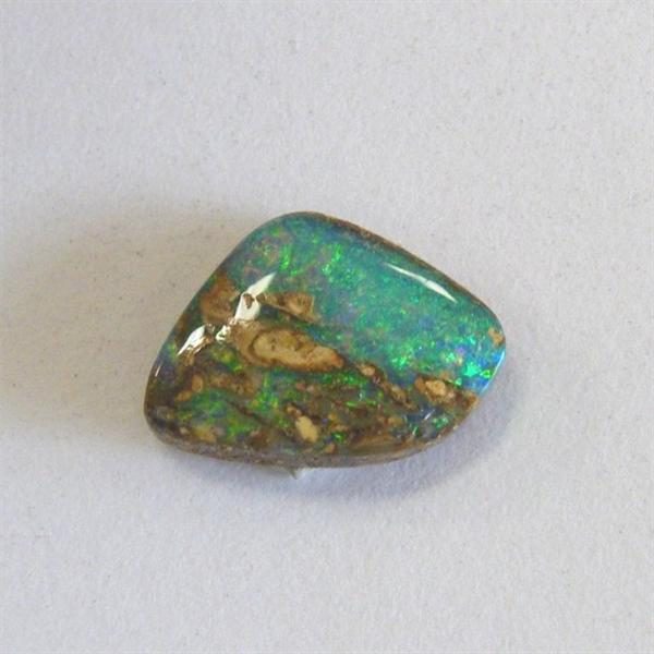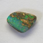 Pipe opal occurs when fragments of tree roots or any organic material are trapped in sediments on an opal level and in time some of resulting cavaties are replaced by potch or precious opal. The sandstone has been stabilised with a polymer resin to increase strength and durability and avoid chipping during setting process. (Not a doublet)