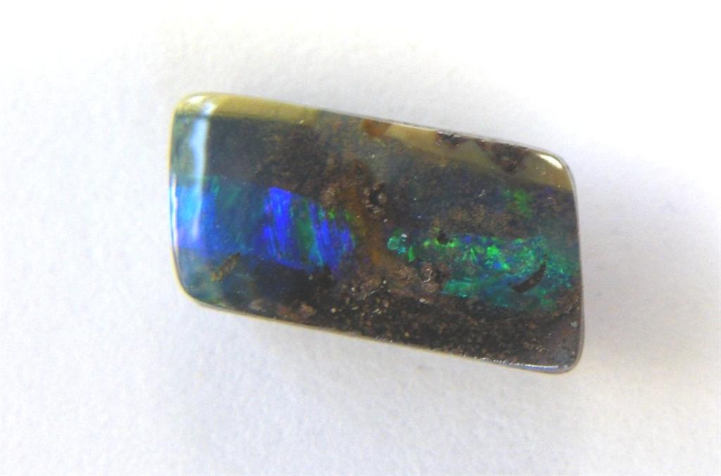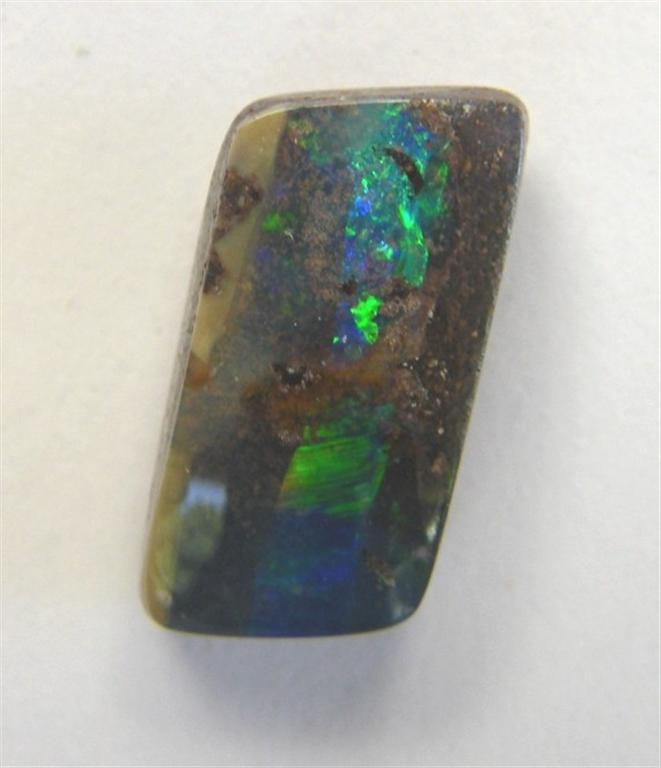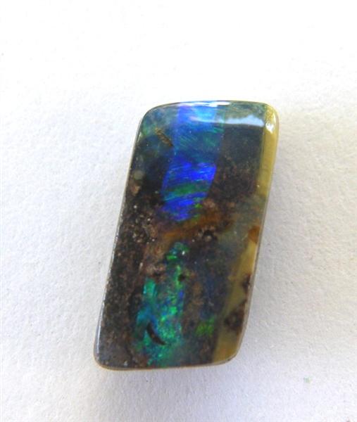 Solid boulder opal with a bar of green/blue flash.