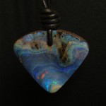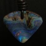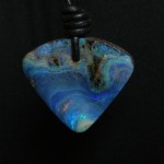 Cool blues and ocean waves show up in this natural solid Australian boulder opal from our mine. It is placed on a 2mm black leather adjustable thong.