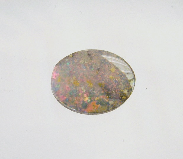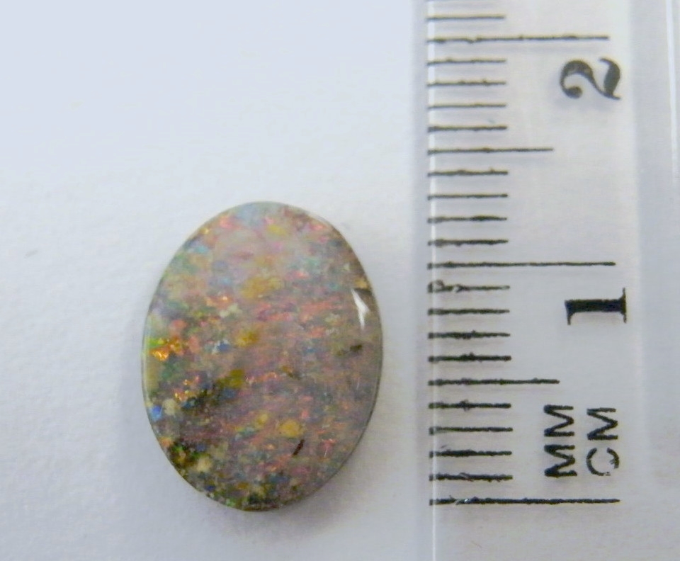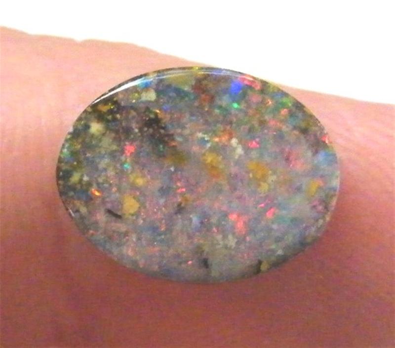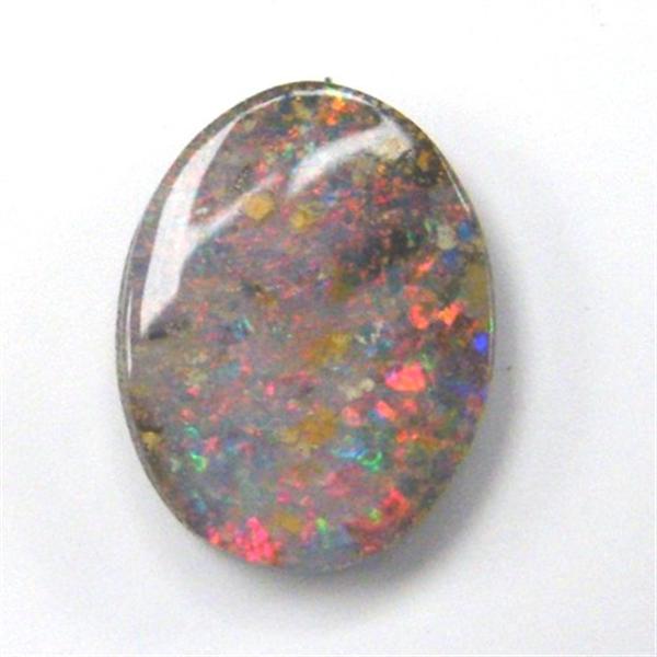 Pink tonings with orange flecks of colour. Has a small amount of ironstone in the face which is normal for this quality of opal. From our mine in western Queensland.