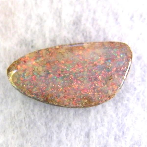 Pinfire pastel pink and green sparkles through this natural Australian boulder opal from the Quilpie mining fields in western Queensland. It is quality cut and highly polished.
