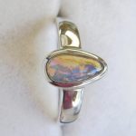 Beautiful green flash rolls across the face of this solid Australian pipe opal.  It was found on our mining lease in western Queensland.  This pipe opal has some natural adhering sandstone still on the back.  Pipe opal occurs when fragments of  tree roots or any organic material are trapped in sediments on an opal level and in time some of resulting cavaties are replaced by potch or precious opal.  The sandstone has been stabilised with a polymer resin to increase strength and durability and avoid chipping during setting process.  (Not a doublet)