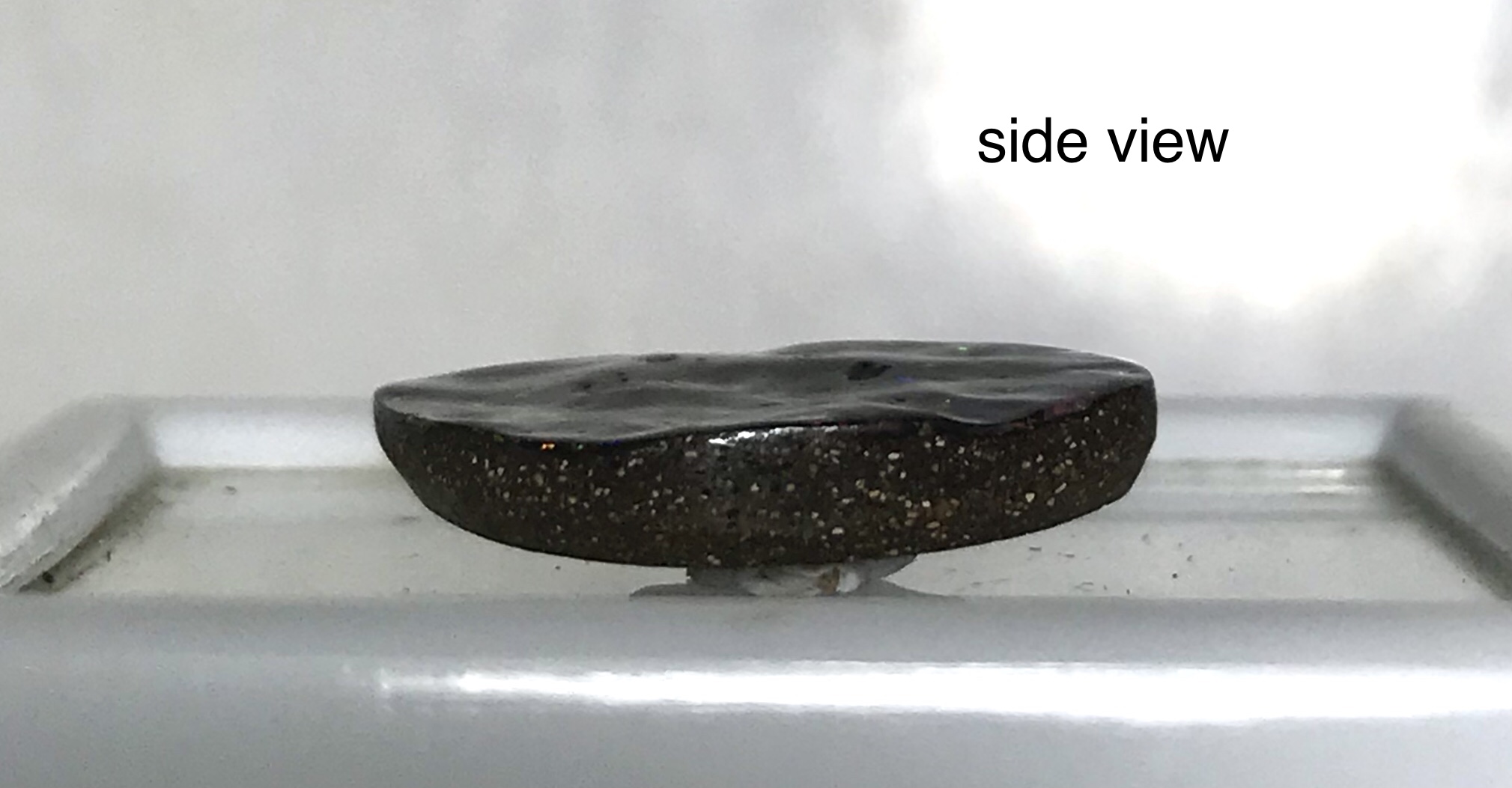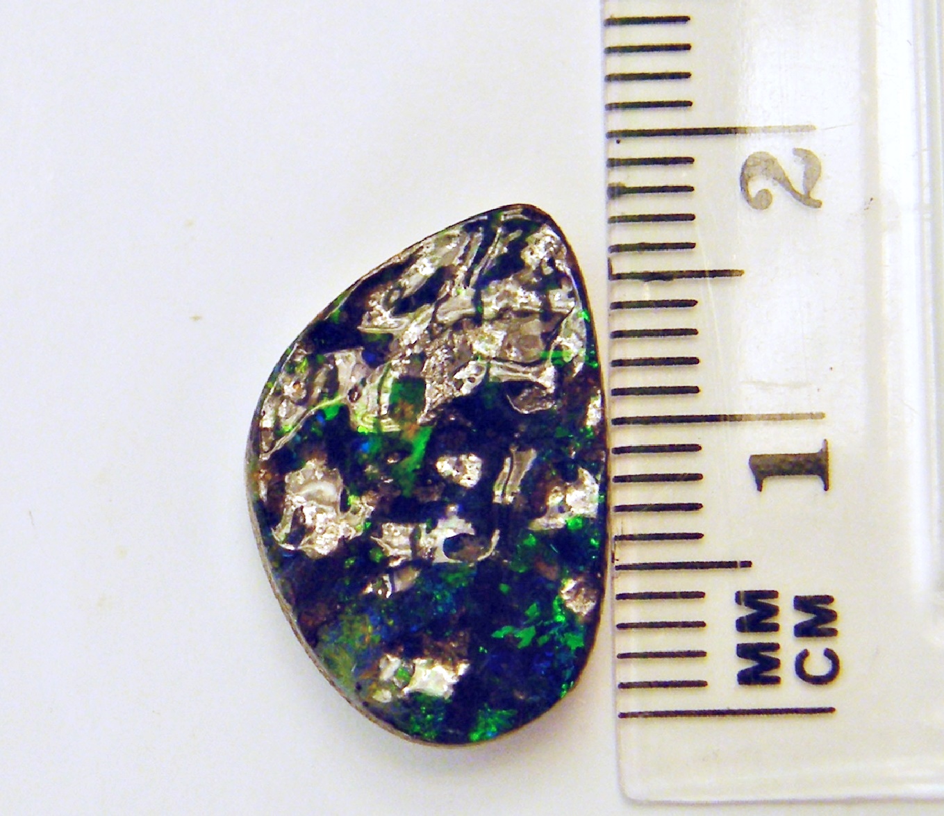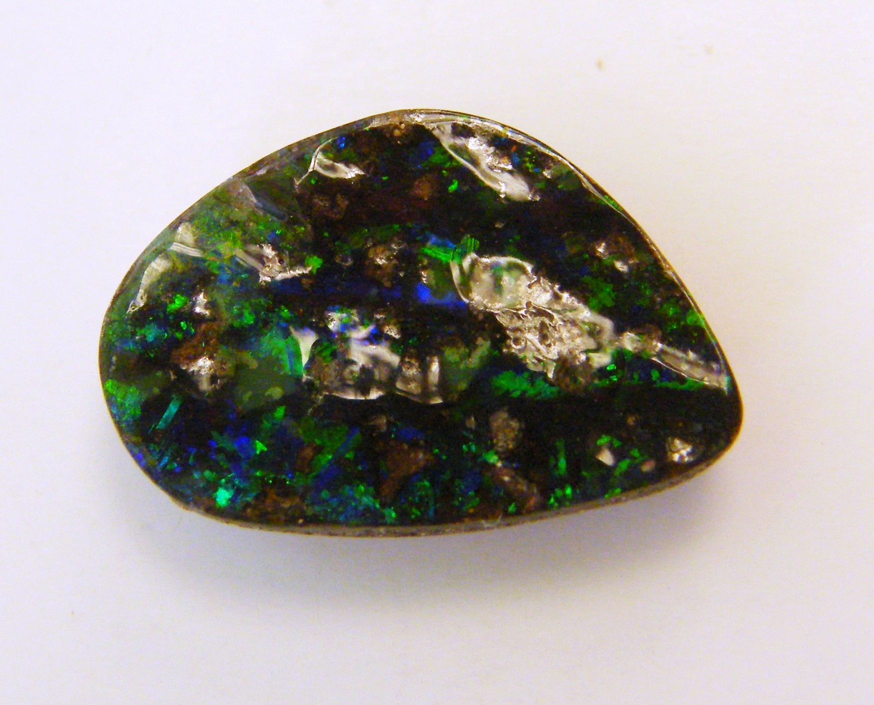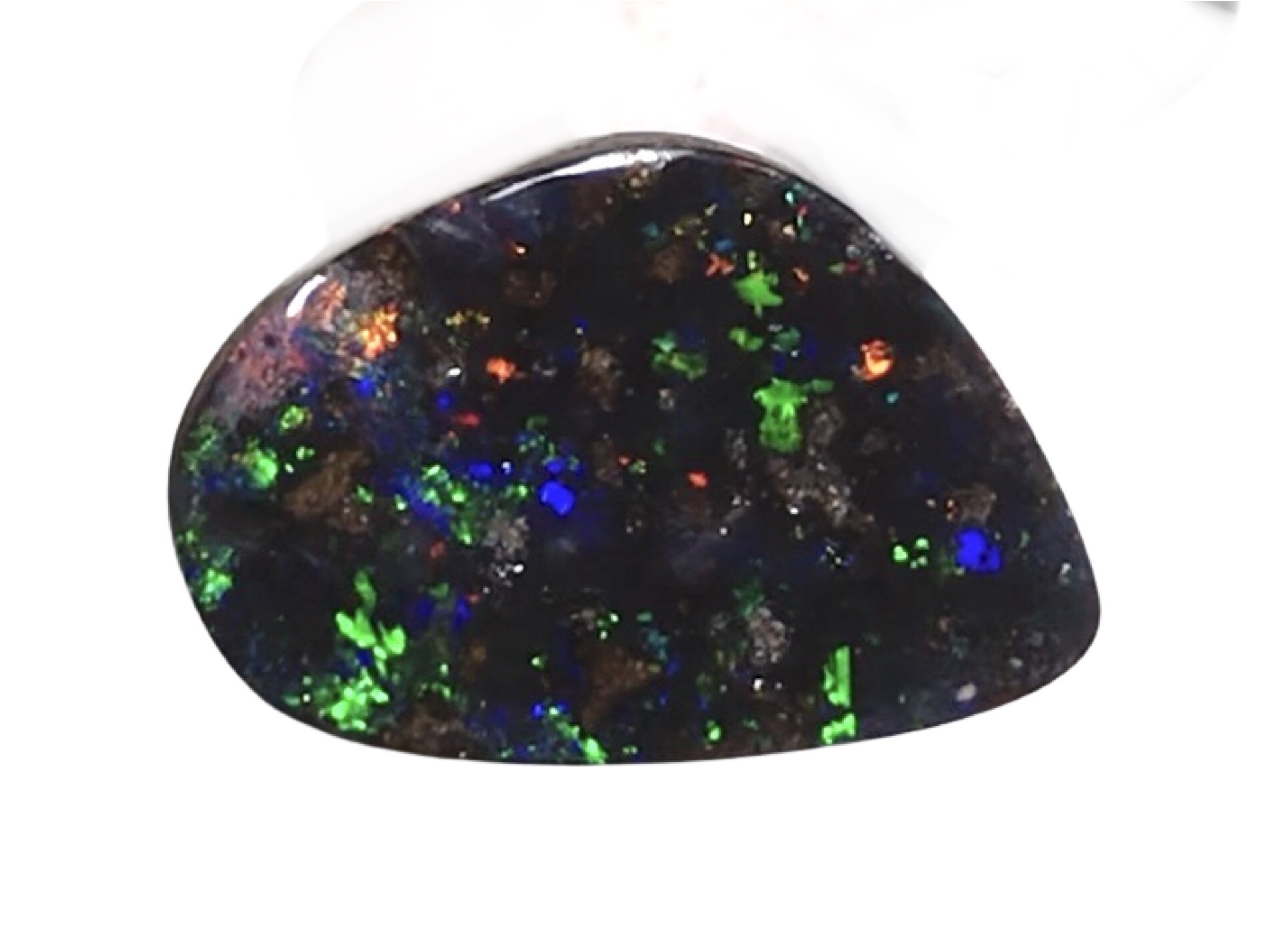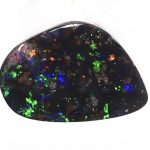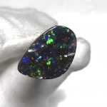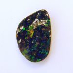 Beautiful rich multicolours sparkle from this natural Australian boulder opal from our mine in western Queensland. There is also a hint of orange and royal blue amongst the green. It has an undulating surface where we have followed the opal vein using fine tools. It is highly polished.