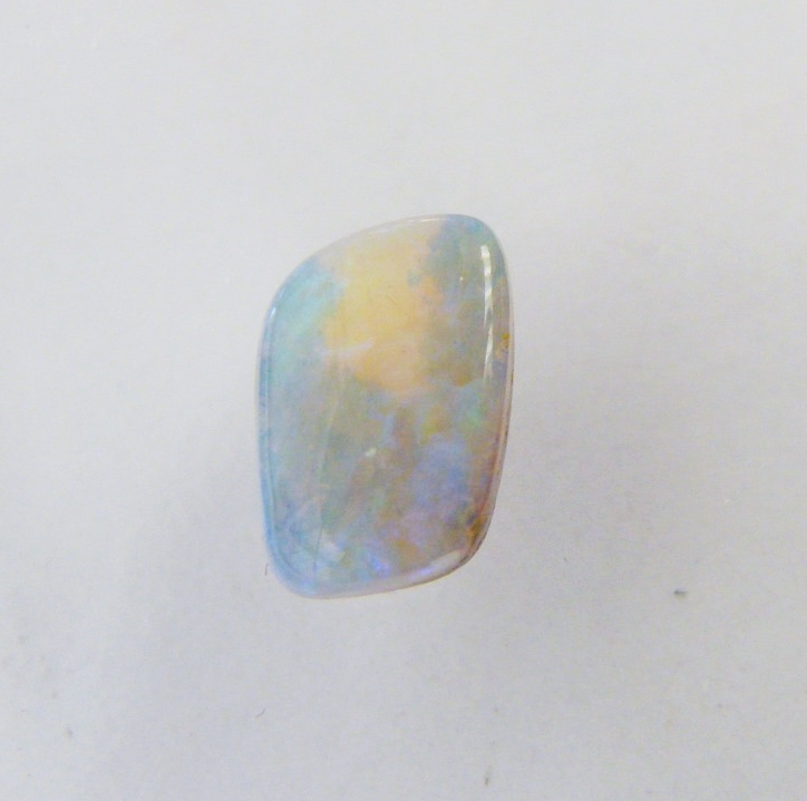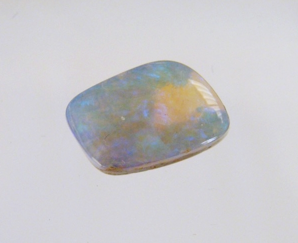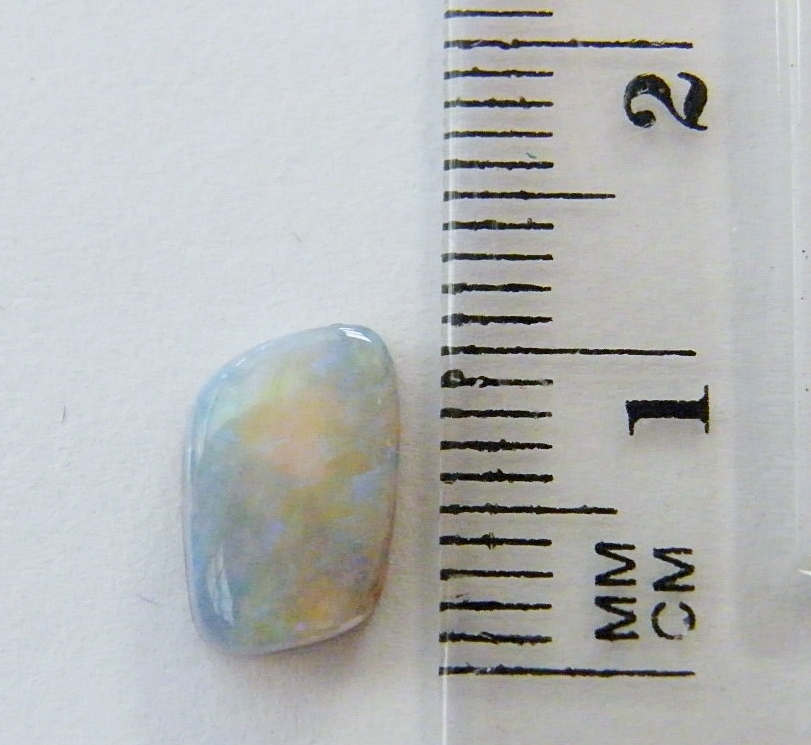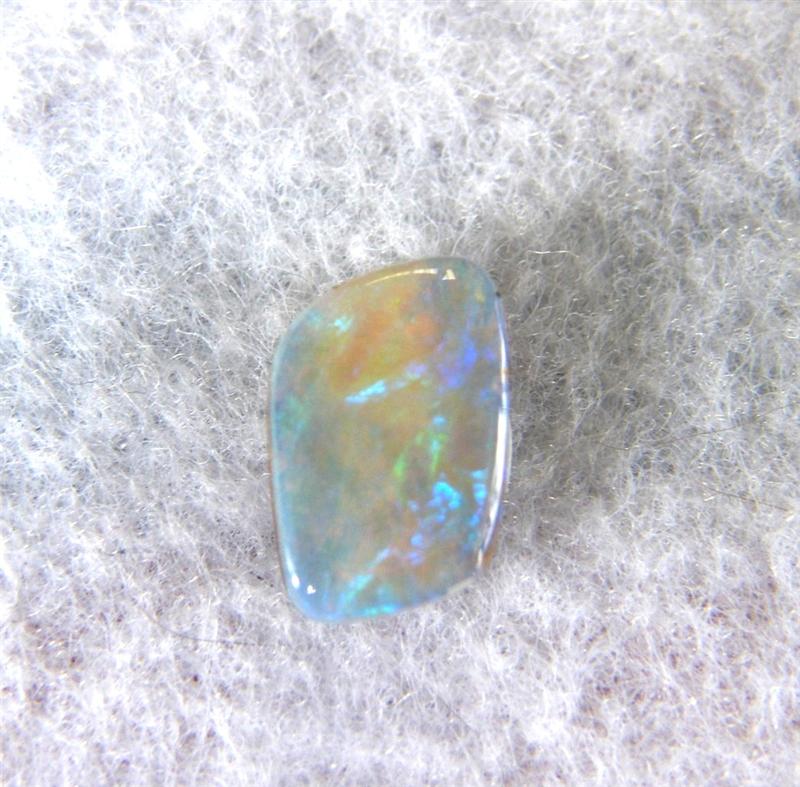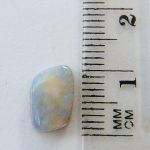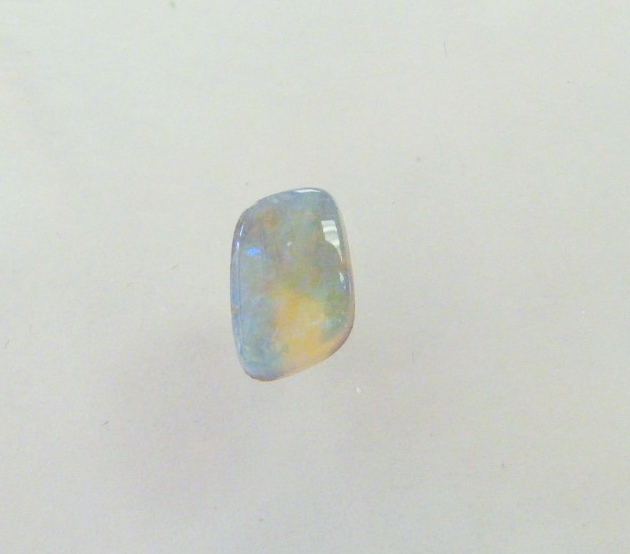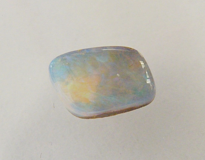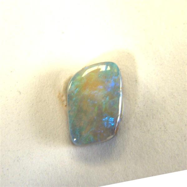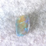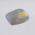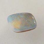 Silky green moves across this face of this solid pipe opal from our mine in the Quilpie district in western Queensland. It has natural adhering sandstone still on the back. Pipe opal occurs when fragments of tree roots or any organic material are trapped in sediments on an opal level and in time some of resulting cavaties are replaced by potch or precious opal. The sandstone has been stabilised with a polymer resin to increase strength and durability and avoid chipping during setting process. (Solid Opal – Not a doublet)