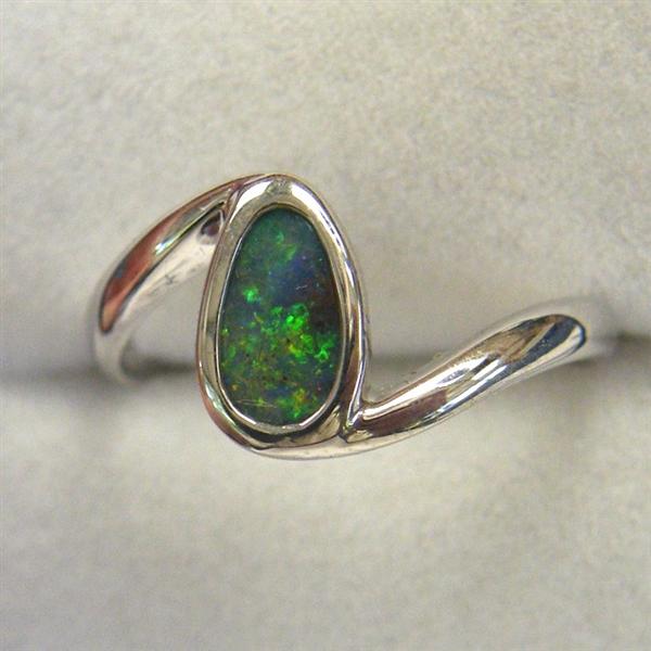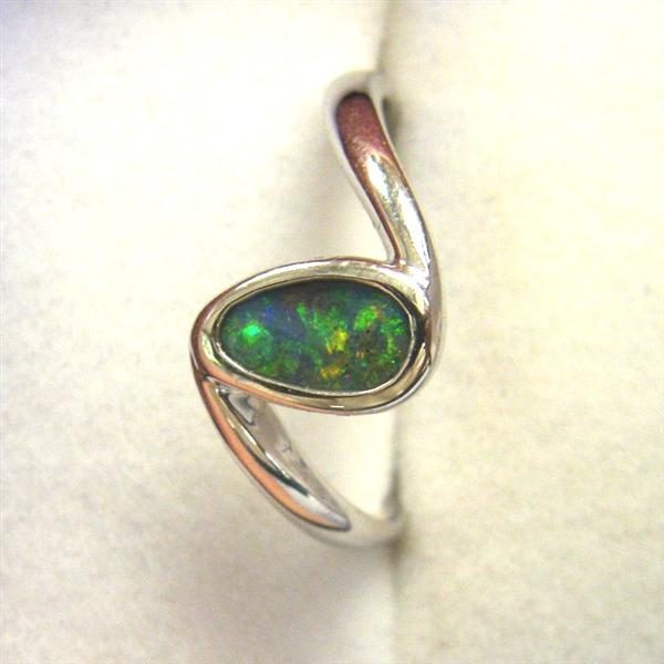 Flashy green and gold make this handcrafted solid .925 sterling silver ring a beautiful piece of jewellery. It is a natural Australian boulder opal from western Queensland. The ring has been rhodium plated to prevent tarnishing. Comes with a FREE silver polishing cloth.