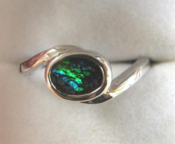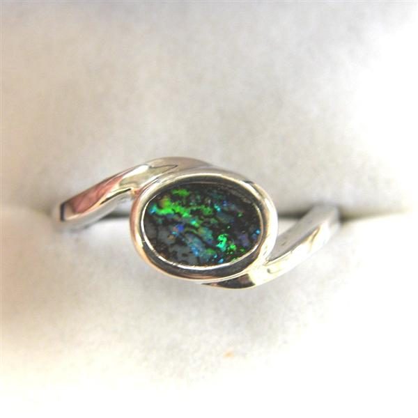 Solid Sterling Silver Ring with Green Solid Australian Boulder O