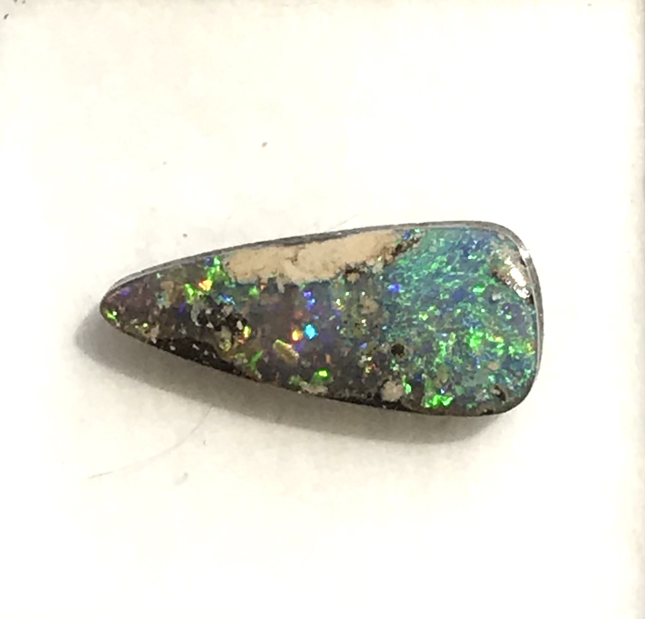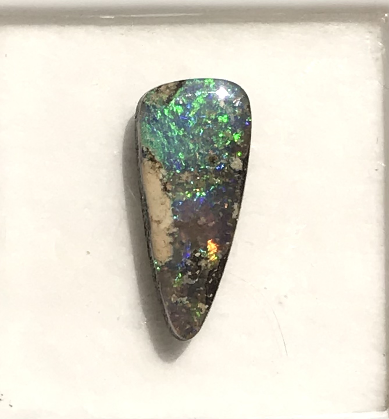 - This sparkly green boulder opal was found on the Bulgroo opal in western Queensland, about 200km W NW of Quilpie where we are open cut mining. It has bright sparkles of green across the opal with a small amount of ironstone in the face which is normal for this quality of opal.