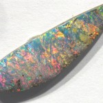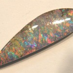 Australian natural solid boulder opal from our mine in the Quilpie district in western Queensland with flashes of orange and other pastel colours.