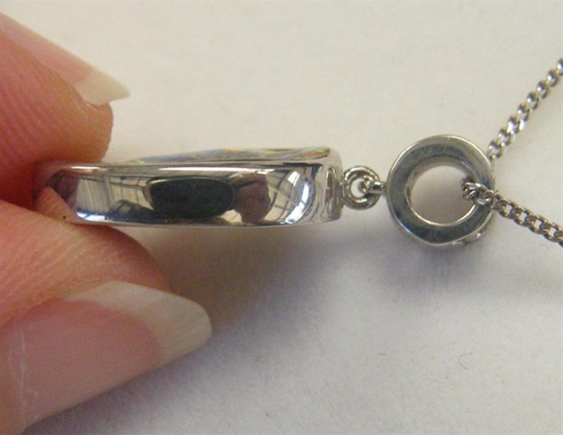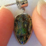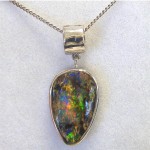 Wood replacement occurs in our mines where wood and plant material were deposited amongst the heavier sediments. When the ground became silicified some of this material was replaced with precious opal.Comes boxed with sterling silver chain and FREE silver polishing cloth.