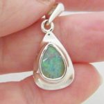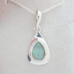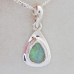 Bright green flashes across the face of this natural Australian boulder opal from the Quilpie mining district of western Queensland. It is electroform set in solid 925 sterling silver with a swinging bail. Comes on a 45cm long solid sterling silver chain and FREE silver polishing cloth.