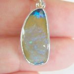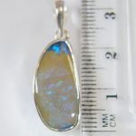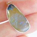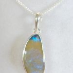 This natural Australian boulder opal has butterscotch coloured opal with green/blue sparkles. It was mined on our mining lease in western Queensland and then electroplated in solid 925 sterling silver with a solid sterling silver swinging bail. Comes with a solid sterling silver chain and FREE silver polishing cloth.