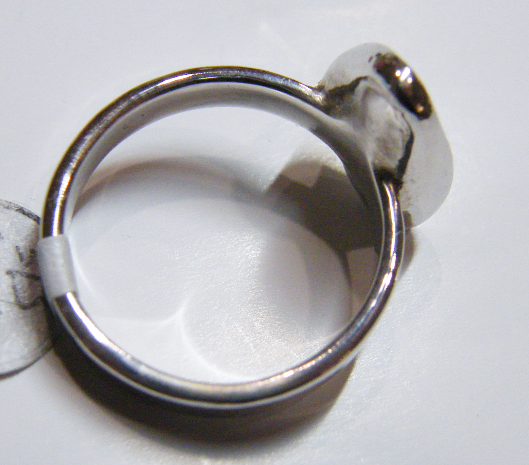 Electroforming involves a process whereby silver dust is painted around the stone and then it is suspended in a silver cyanide solution where silver is electro-deposited as a thick layer of fine silver. It is then sanded and polished the same as a casting.