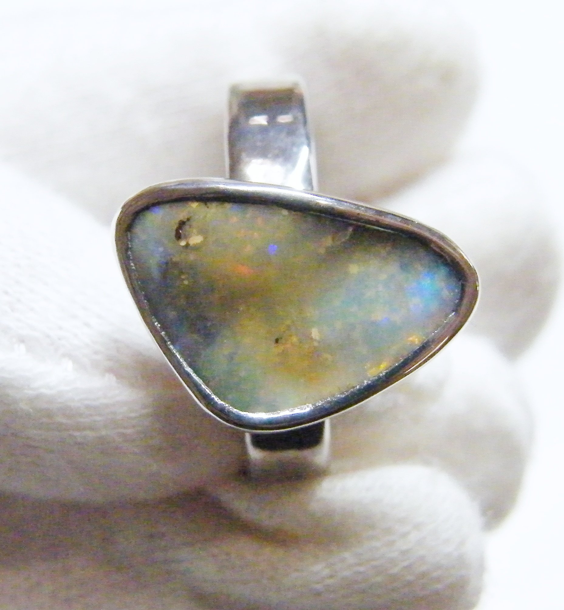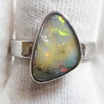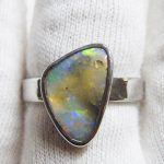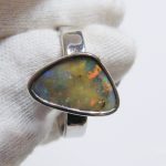 Red and orange flash through this natural Australian boulder opal from our mine in western Queensland. This opal has been electroformed with sterling silver to create this ring. Comes with a free silver polishing cloth.