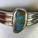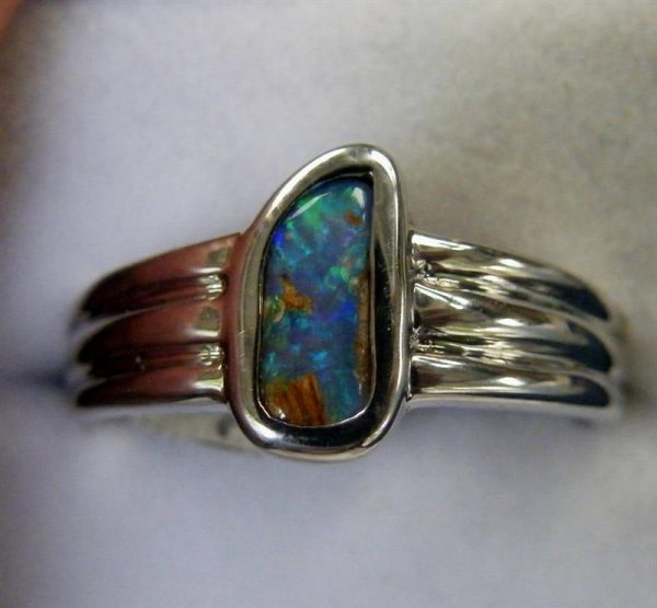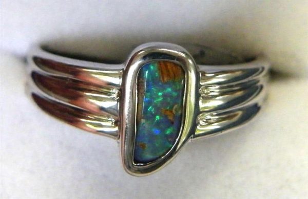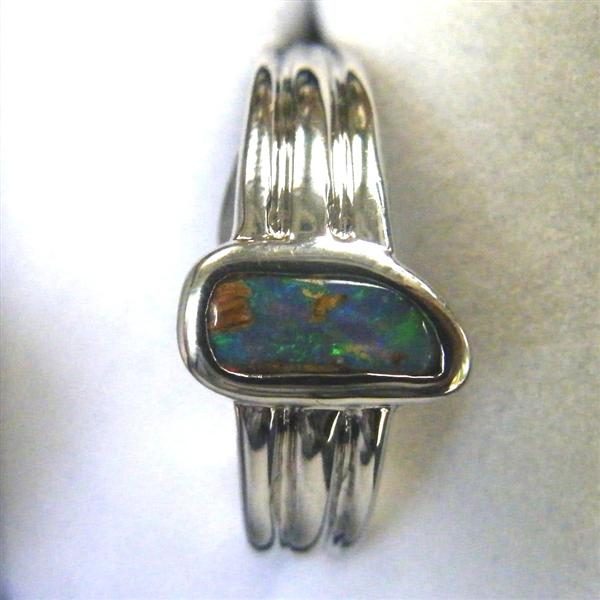 This solid Australian pipe opal has green flashes across the top of the stone. Quality handcrafted in solid 925 sterling silver and rhodium plated to prevent tarnishing.