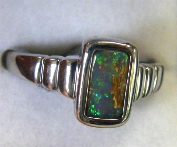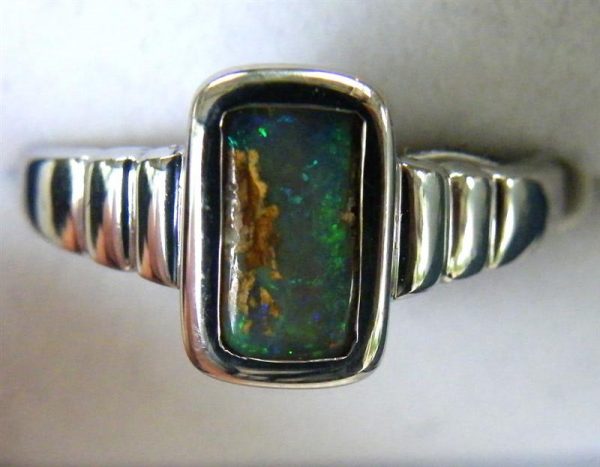 This solid Australian pipe opal has green flashes across the top of the stone. Quality handcrafted in solid 925 sterling silver and rhodium plated to prevent tarnishing.