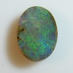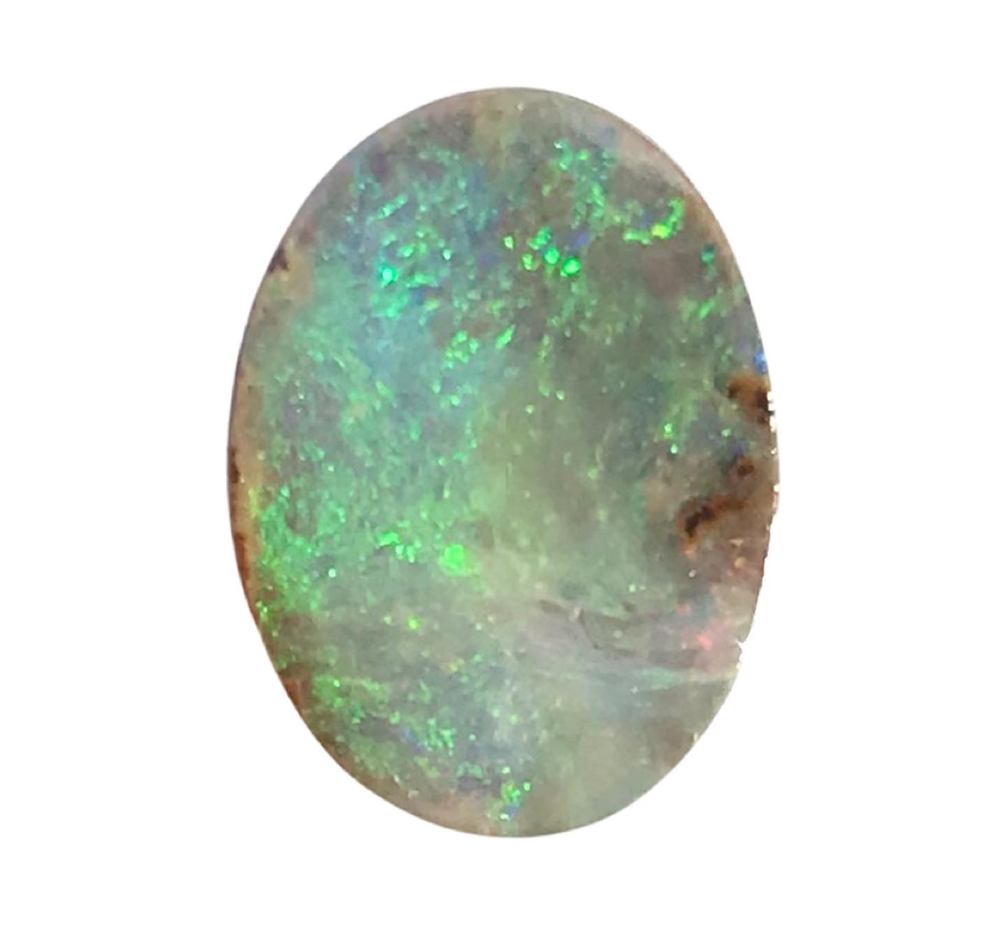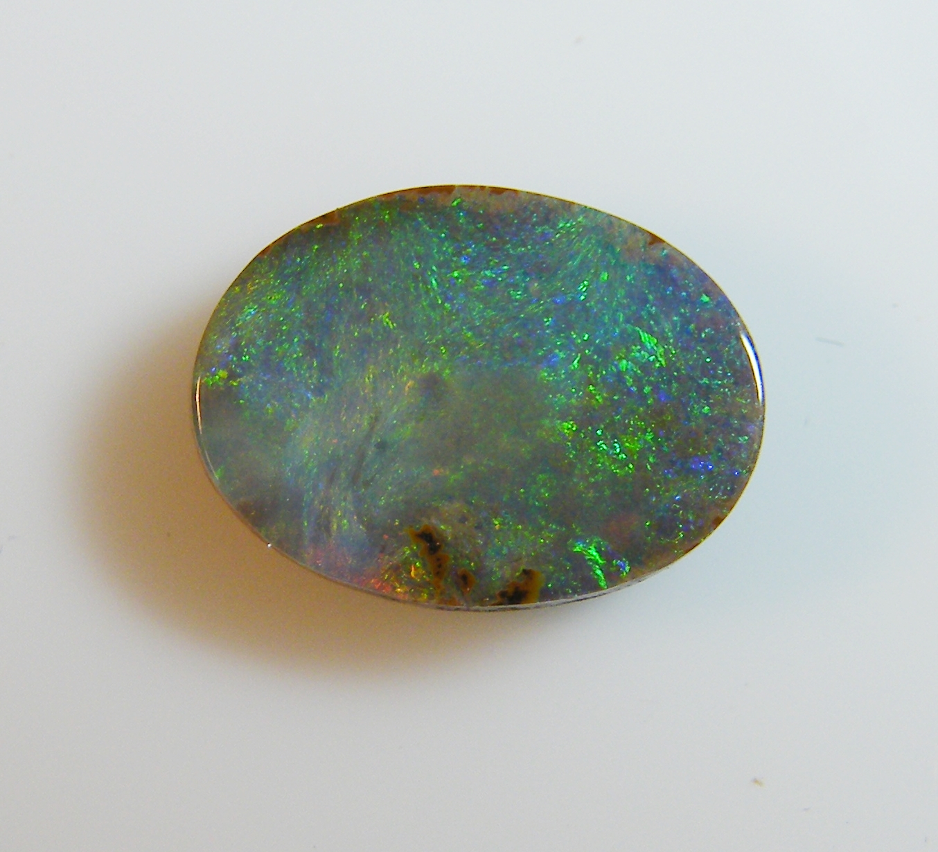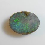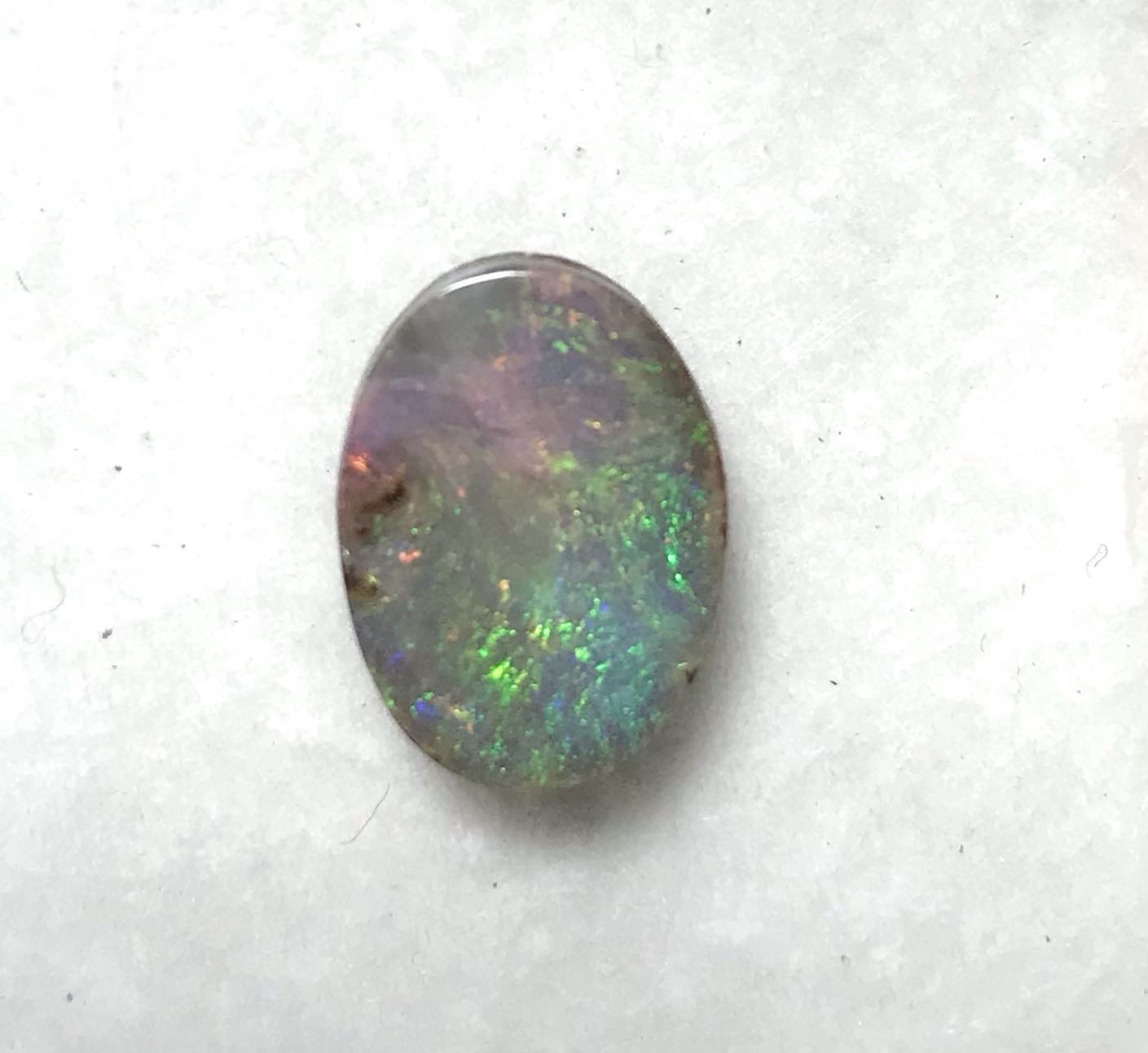 Natural Australian boulder opal in green tonings.  It is from our mine in western Queensland and has a slight concave surface which is highly polished.